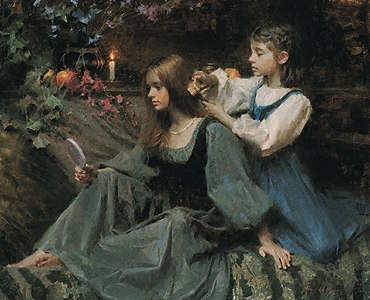 Roses of Picardy ![]() this beautiful image can be purchased as a framed print through "World-Wide Art" on the internet. The talented Artist: Morgan Weistling She is watching by the poplars, Colinette with the sea blue eyes, She is watching and longing and waiting Where the long white roadway lies. And a song that stirs in the silence, As the wind in the boughs above. She listens and starts and trembles. 'Tis the first little song of love... Roses are shining in Picardy, In the hush of the silvery dew. Roses are flowering in Picardy, But there's never a rose like you! And the roses will die with the summertime, And our paths may be far apart, But there's one rose that dies not in Picardy! 'Tis the rose that I keep in my heart!" And the years fly on forever, 'Til shadows veil their skies, But he loves to hold her little hands And look in her sea blue eyes. And she sees the road by the poplars, Where they met in the bygone years, For the first little song of the roses Is the last little song she hears: Roses are shining in Picardy, In the hush of the silvery dew. Roses are flowering in Picardy, But there's never a rose like you! And the roses will die with the summertime, And our hearts may be far apart, But there's one rose that dies not in Picardy! 'Tis the rose that I keep in my heart!